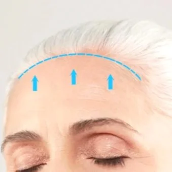 مع تقدم العمر ، قد تنزل الحواجب عن مكانها الطبيعي ويتراجع خط شعر فروة الرأس مما يؤدي الى اتساع الجبهة. تستهدف هذه العملية رفع الحواجب وتصغير الجبهة بشق جرح أعلى الجبهة لشدها بالكامل و رفع الحواجب من الجنبين مع تقديم فروة شعر الرأس للأمام و استئصال الجلد الزائد. من الممكن عمل العملية مع إجراءات أخرى كعملية شد الوجه و الرقبة